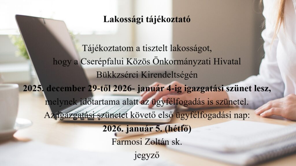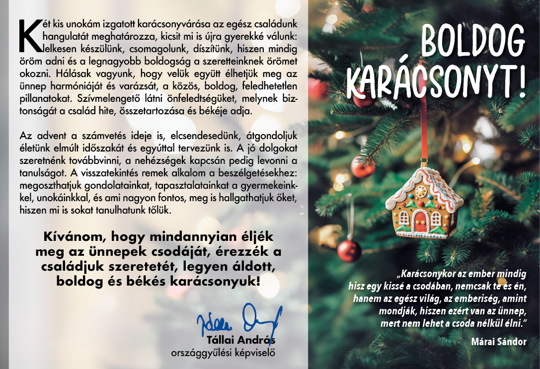 A polgármester tájékoztatja a lakosságot, hogy 2025. december 16-án (kedd) 17 órakor a